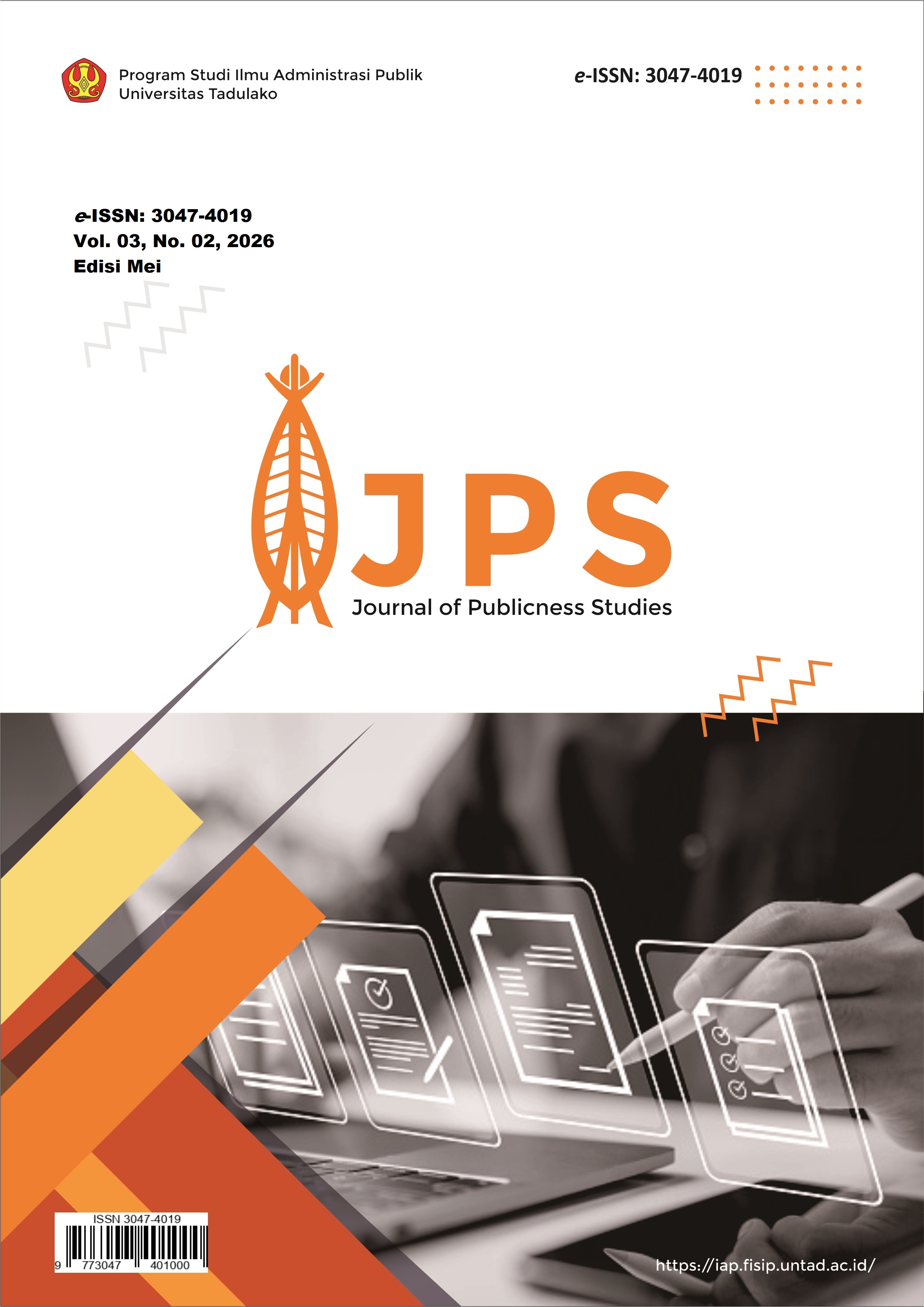JPS: Journal of Publicness Studies adalah publikasi ilmiah yang terbit setiap 4 kali dalam setahun yakni pada bulan Februari, Mei, Agustus, November.  Jurnal ini menerima artikel yang relevan dengan isu-isu kepublikan seperti Kebijakan dan Manajemen Publik, Collaborative Governance, Desentralisasi dan Manajemen Bencana. JPS juga menjamin standar publikasi yang tinggi sehingga para akademisi, peneliti, praktisi di semua bidang mendapatkan ruang untuk berdiskusi teori-teori dan konseptual ilmu sosial secara terbuka. Semua naskah yang masuk akan melalui penilaian awal oleh Editor dan jika dianggap layak untuk dipertimbangkan lebih lanjut, akan melalui proses peer-review.